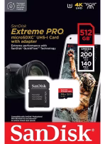 بطاقة SanDisk Extreme PRO microSDXC™ UHS-I بسعة 512 جيجابايت وسرعة 200 ميجابايت/ثانية و140 ميجابايت/ثانية